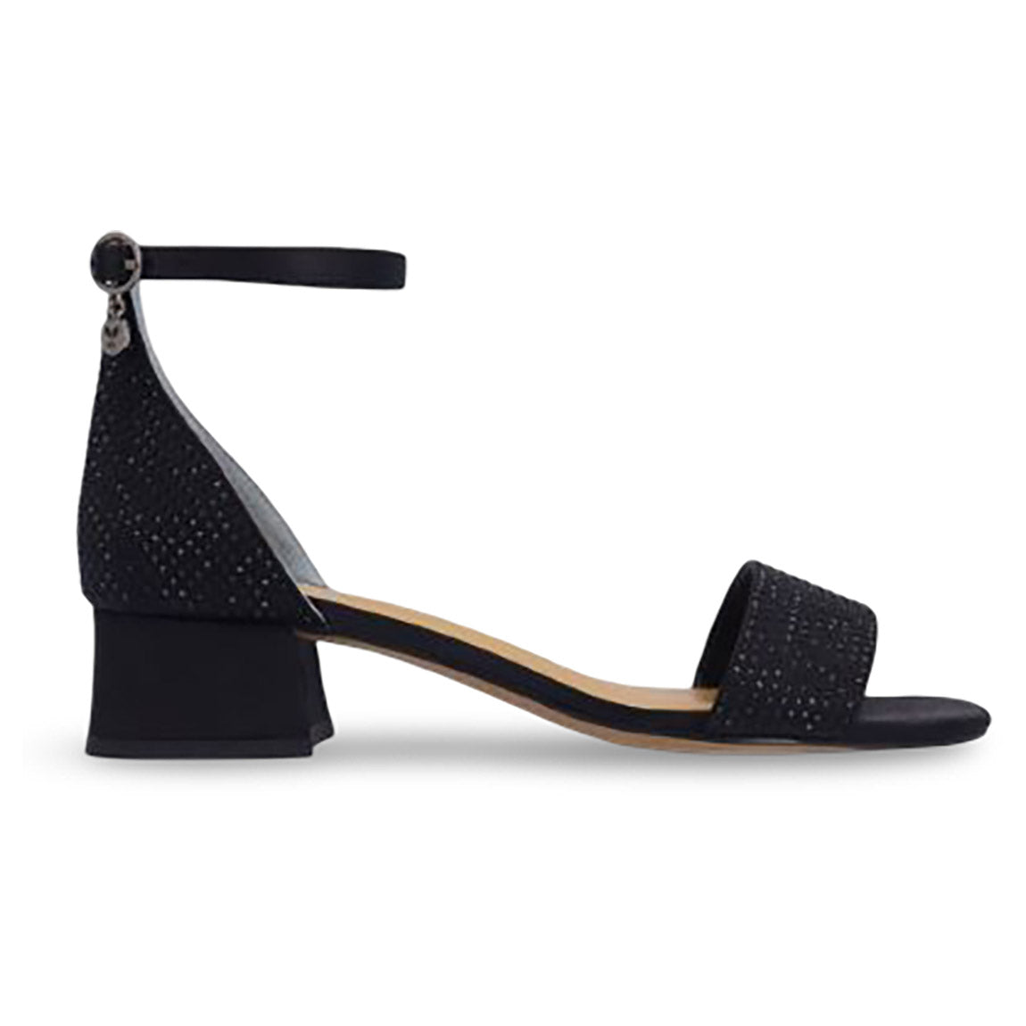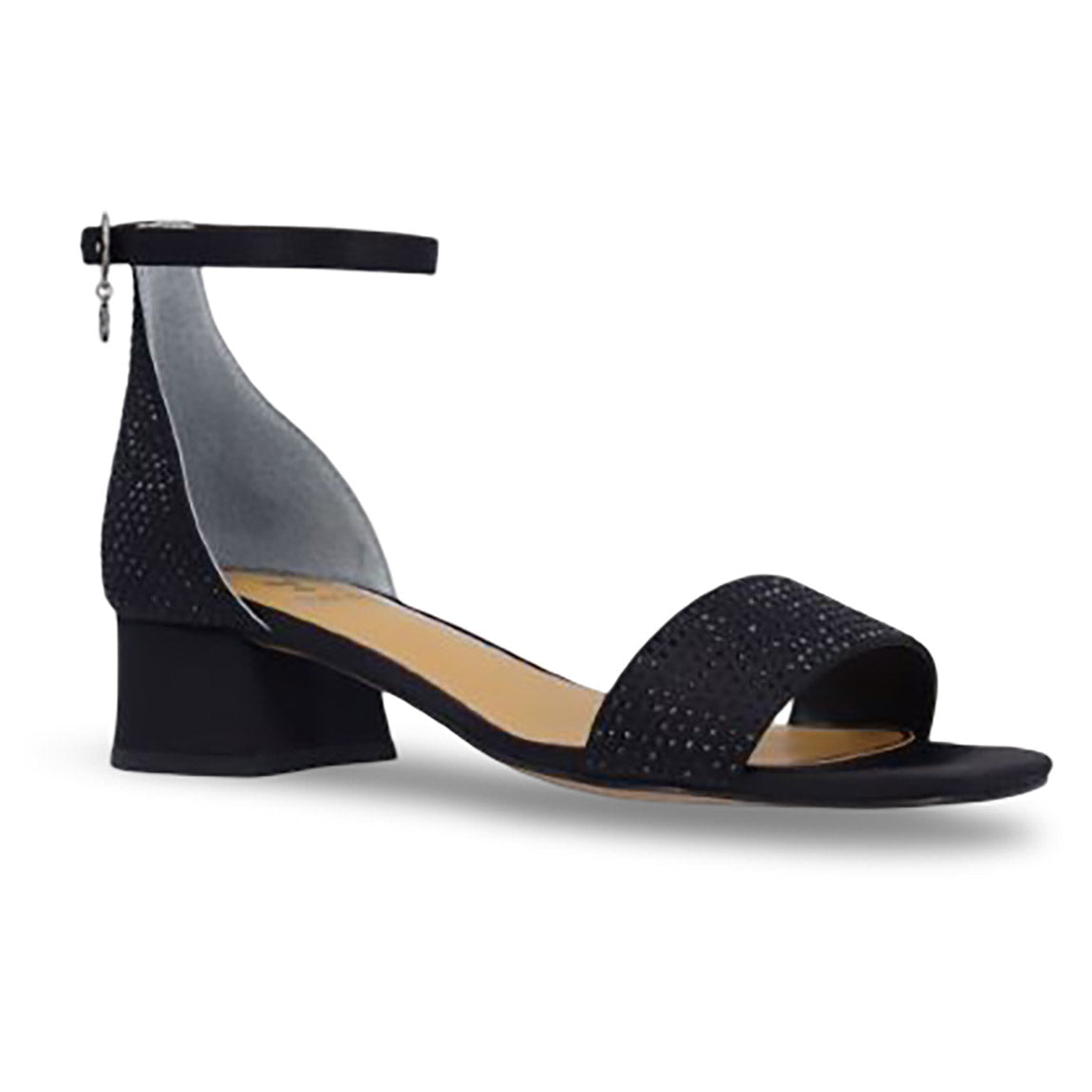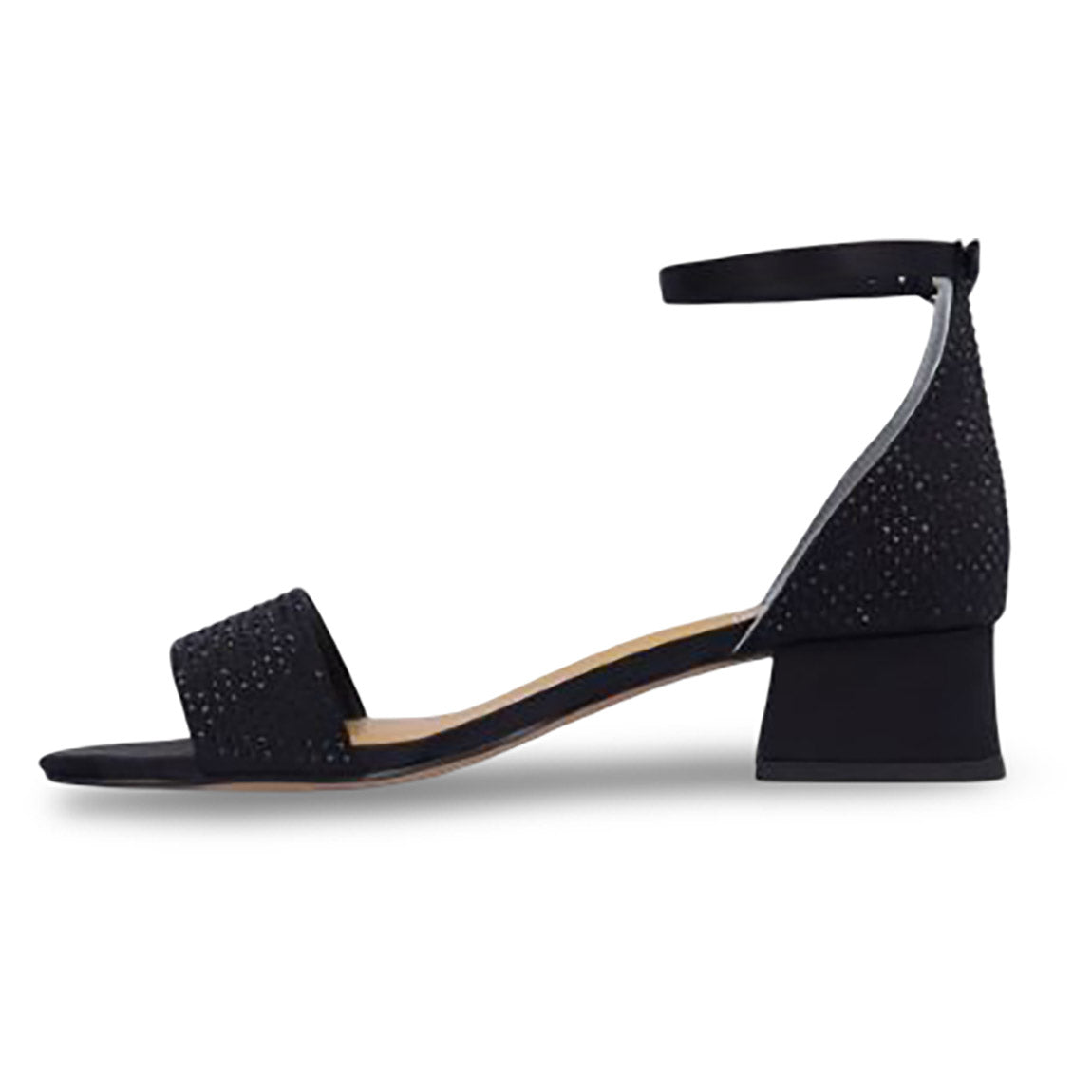 This fabric sandal has a square toe, memory foam+latex insole, synthetic lining and synthetic outsole. This style also features a buckle closure on a 1.5 inch heel.